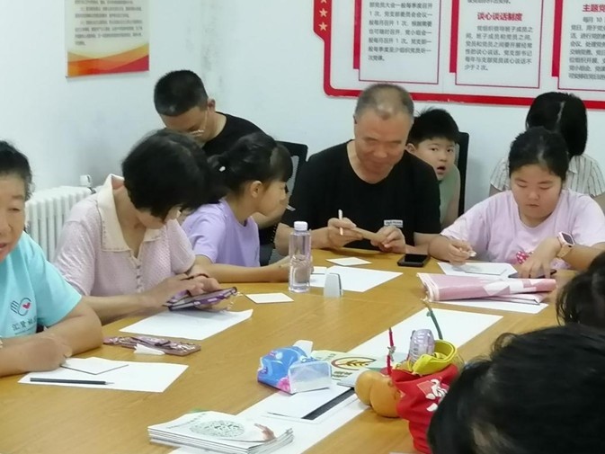 现场,“五老”们与孩子们自发结对,组成了别样的“创作搭档”。年过七旬的退休教师刘叔叔年轻时曾接触过烙画,此刻正耐心地教身旁的小朋友控制烙铁力度:“你看,温度高一点线条会深,轻一点就浅,像不像我们写字时的轻重变化?”小朋友们则用灵动的想象力,提议在作品中加入卡通元素,老少碰撞出奇妙的创意火花。